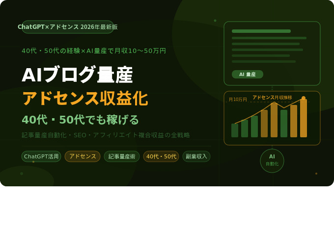 本記事では、40代・50代がAIを活用してブログ記事を量産し、Googleアドセンスで収益化するための完全戦略を7万文字以上で徹底解説します。「AIの使い方がわからない」「ブログを始めたことがない」という全くの初心者の方でも、この記事を読み終えれば今日から行動できる状態になることをお約束します。